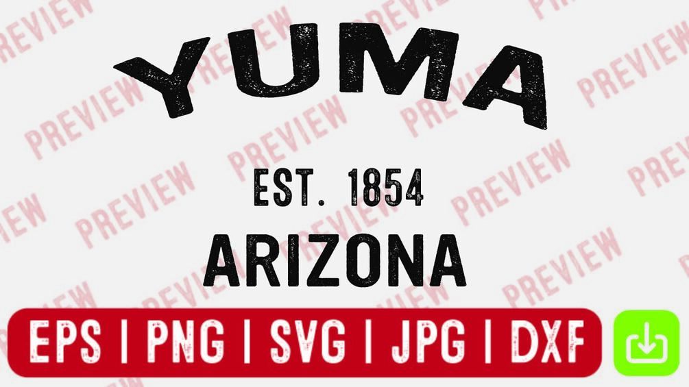 Yuma Arizona Est 1854 SVG files are versatile and cater to a variety of interests, making them ideal for sports enthusiasts, national pride supporters, and more. Whether you're a fan of soccer, football, basketball, rugby, hockey, volleyball, or your country's national team, these designs are perfect. They can be applied to various items like t-shirts, mugs, signs, cards, and more. Additionally, they are compatible with popular cutting machines like Cricut, Silhouette, and others, making it easy to create custom decals effortlessly. With user-friendly SVG files and vector cut compatibility, crafting personalized designs has never been simpler. The design comes in the following formats: – SVG – DXF – PNG (Transparent) – EPS